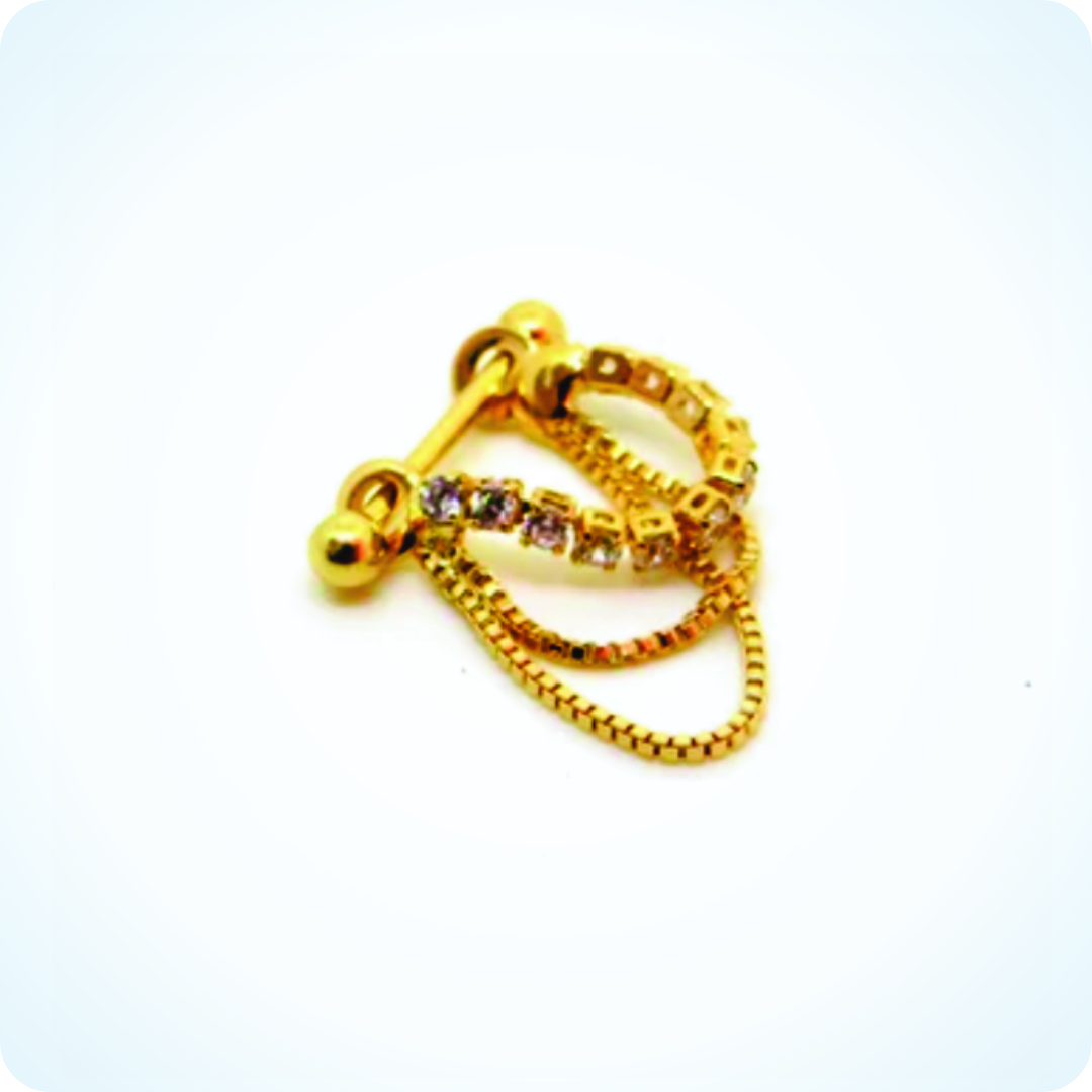 PIERCING Conch Banhado, com Pedras e Corrente. Em Aço Cirúrgico 316L.